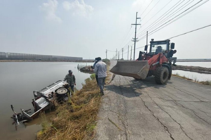 上午10時左右,海豐鎮(zhèn)村民駕駛三輪車途經建筑工程公司東側路段時,因避讓車輛造成三輪車失控,連人帶車沖入路北的水中。三輪車落水后迅速傾斜下沉,情況危急,村民大聲呼救。